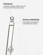 - Con activo antiestrés: reduce los efectos del cortisol en la piel; combate el aspecto cansado y mejora la luminosidad